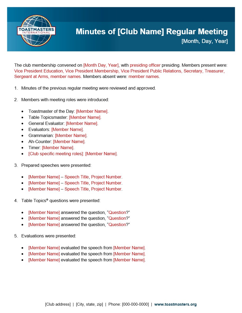 A guide describing each of the common roles in a Toastmasters Meeting.